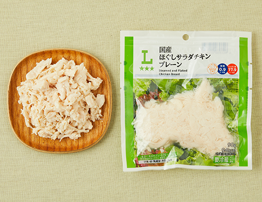 鶏むね肉を、塩、こしょうで味付けし、じっくり蒸し上げ、程よいサイズにほぐしました。そのままおつまみとして、またサラダや麺類のトッピング具材としてお使い頂けます。