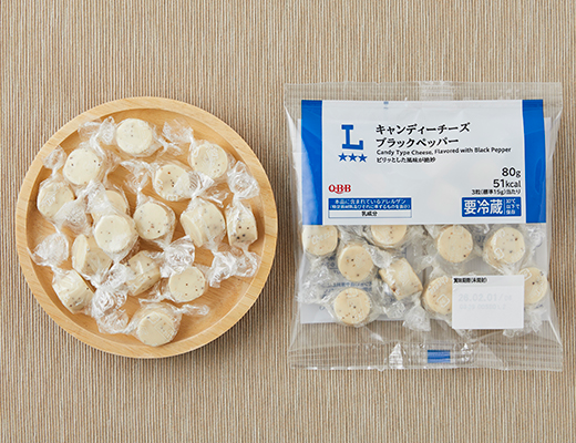 ブラックペッパーの辛味が程よく感じられる、ひとくちサイズのチーズ。