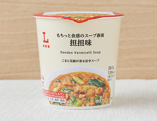 春雨の配合を変えて、もちっとした食感にリニューアルしました。ごまと花椒が香るうま辛スープです。プラスチック使用量削減を目的に上蓋を紙製に変更しました。