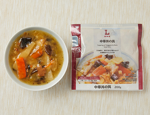 ごま油香る、具材のうまみが溶け込んだ白湯風味の中華丼の具です。