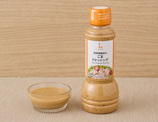 風味のよいごまとかつおだしの香りをきかせたごまドレッシングです。