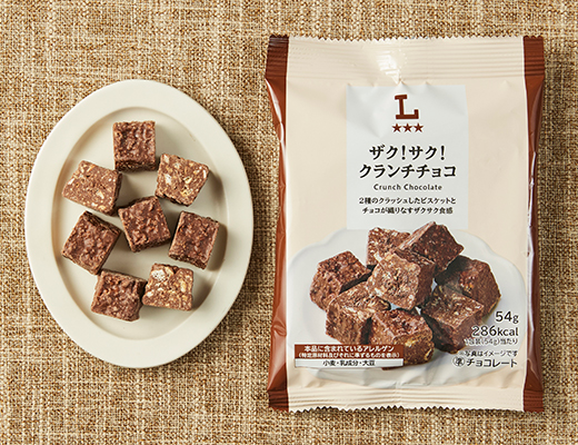 2種のクラッシュしたビスケットとチョコが織りなすザクサク食感が楽しめます。