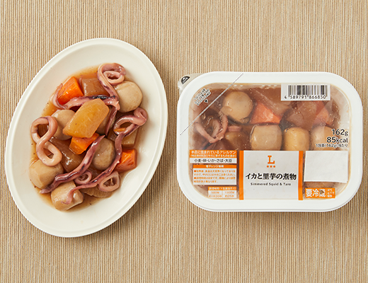 しっかり味を染みさせた里芋といかを合わせました。だしのきいた和風の味付けです。
