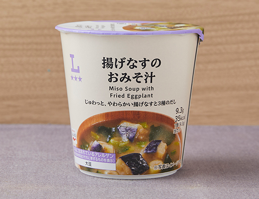 やわらかい揚げなすと3種のだしが楽しめるおみそ汁です。