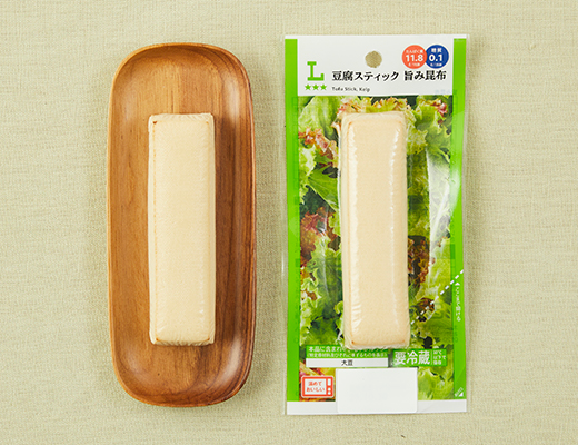 ワンハンドで食べられる豆腐バーです。豆腐に合う昆布出汁で味付けし、まろやかでコクがあり飽きのこない味わいです。1本で植物性たんぱく質を10g摂取出来ます。