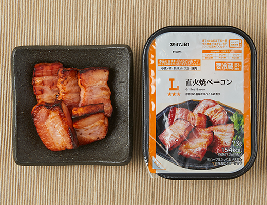 厚切りの旨味とスパイスの香りが食欲をそそるおつまみにぴったりの直火焼きベーコンです。