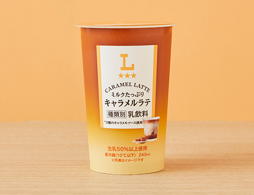 生乳50%以上使用。アラビカ100%のコーヒーに3種のキャラメルソースをブレンド。