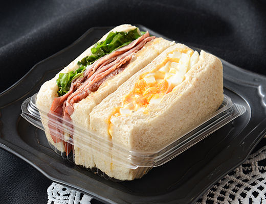 人気の具材のハム、チーズ、たまごが楽しめるサンドイッチ。