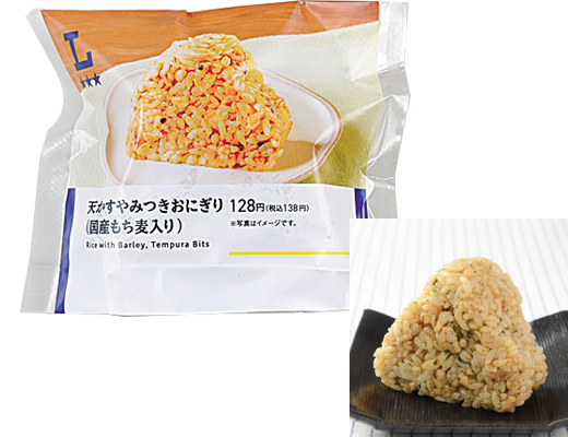 天かす×天つゆ×あおさを混ぜ込んだ、やみつきになる味わいのもち麦入り混ぜごはんおにぎり。