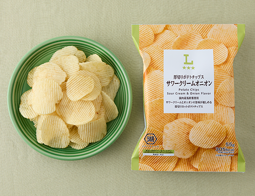 国内産馬鈴薯を使用し、サワークリームとオニオンの旨味が楽しめる厚切りカットポテトチップスです。