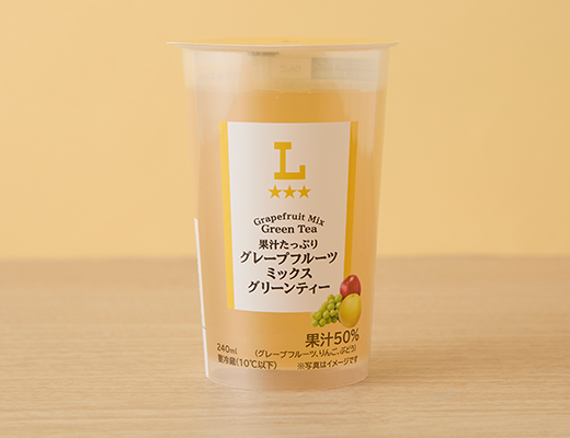 風味豊かな緑茶にグレープフルーツと2種類の果汁をたっぷり50%加えた優しい味わい。