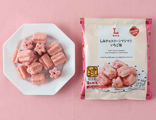 いちごチョコがじゅわっとしみ出す、チョコスナックです。