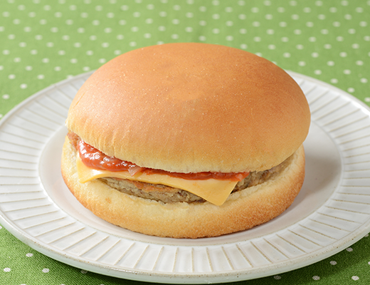 ハンバーグパティに、チェダーチーズとオニオン入りケチャップを合わせました。