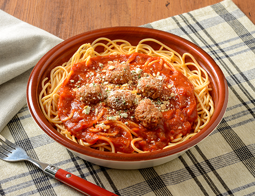 にんにくをきかせたトマトソースとごろごろジューシーなミートボール!