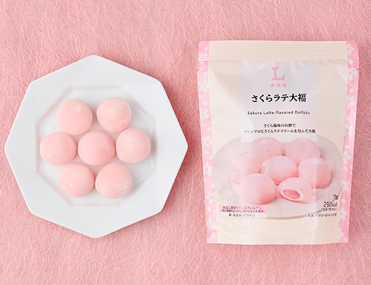 さくら風味のお餅でマシュマロとさくらラテクリームを包んだ大福です。
