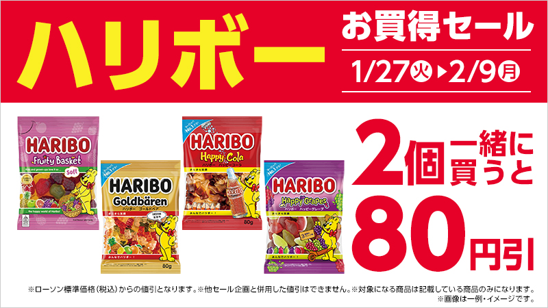 ※『スマホレジ』決済は対象外となります。 - ※赤文字の価格はローソン標準価格(税込)からの値引後価格(税込)となります。ただし、セール開始前から販売中の新商品においては、発売日からセール前日までの販売価格(税込)からの値引となり、セール期間中に発売する新商品においては、セール終了後の販売予定価格(税込)からの値引となります。