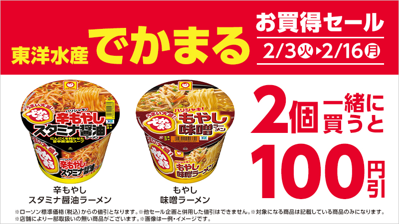 | 東洋水産 でかまる 辛もやしスタミナ醤油ラーメン | 307円 |