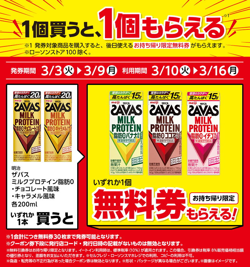 | ●引換券対象商品 レシート無料券 引換期間 3/10(火)〜3/16(月) |