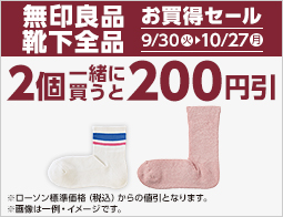 対象の衣料品を2個同時購入で200円引
