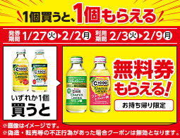 対象のゼリー飲料を2個同時購入で50円引、3個同時購入で100円引