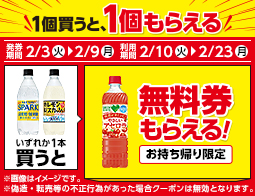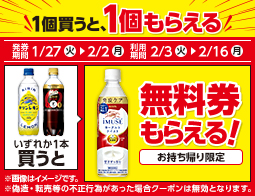 対象のインスタント飲料を2個同時購入で100円引、3個同時購入で200円引