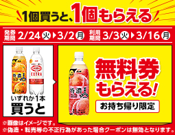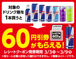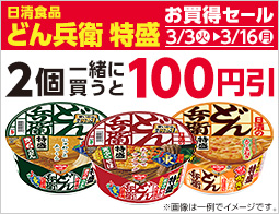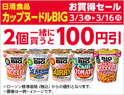 対象の飲料を2本同時購入で50円引、3本同時購入で100円引