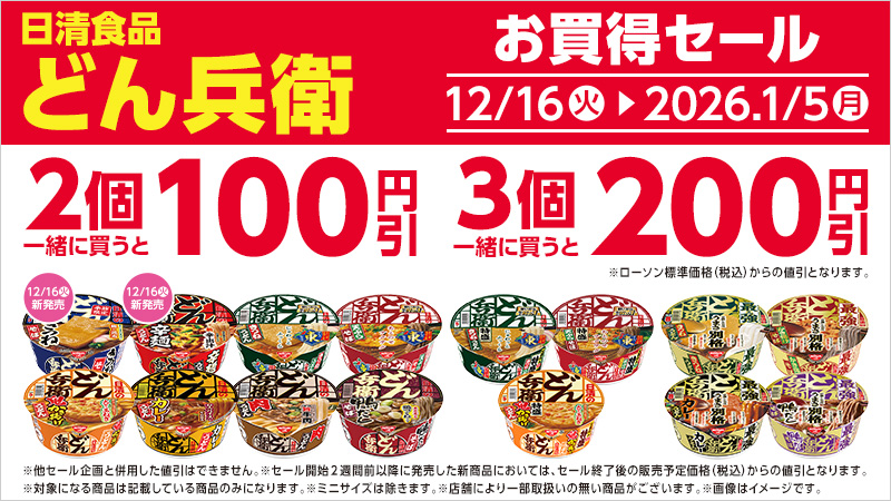 - ※赤文字の価格はローソン標準価格(税込)からの値引後価格(税込)となります。ただし、セール開始前から販売中の新商品においては、発売日からセール前日までの販売価格(税込)からの値引となり、セール期間中に発売する新商品においては、セール終了後の販売予定価格(税込)からの値引となります。