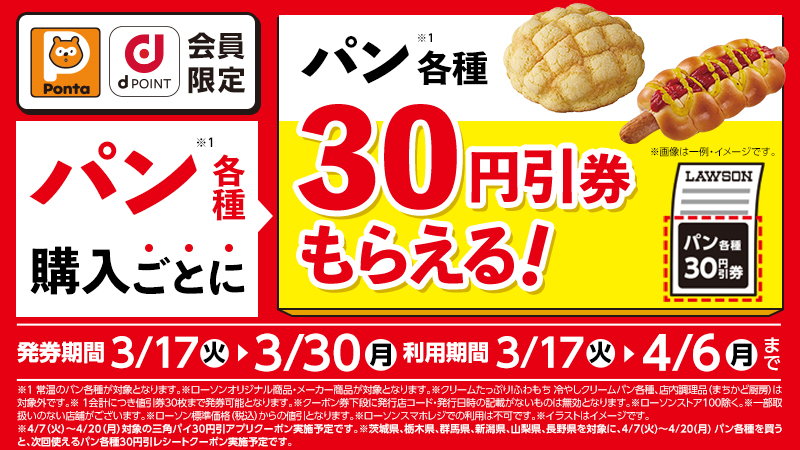 ●下記対象商品を購入すると、パン30円引券がレシートについてきます。
